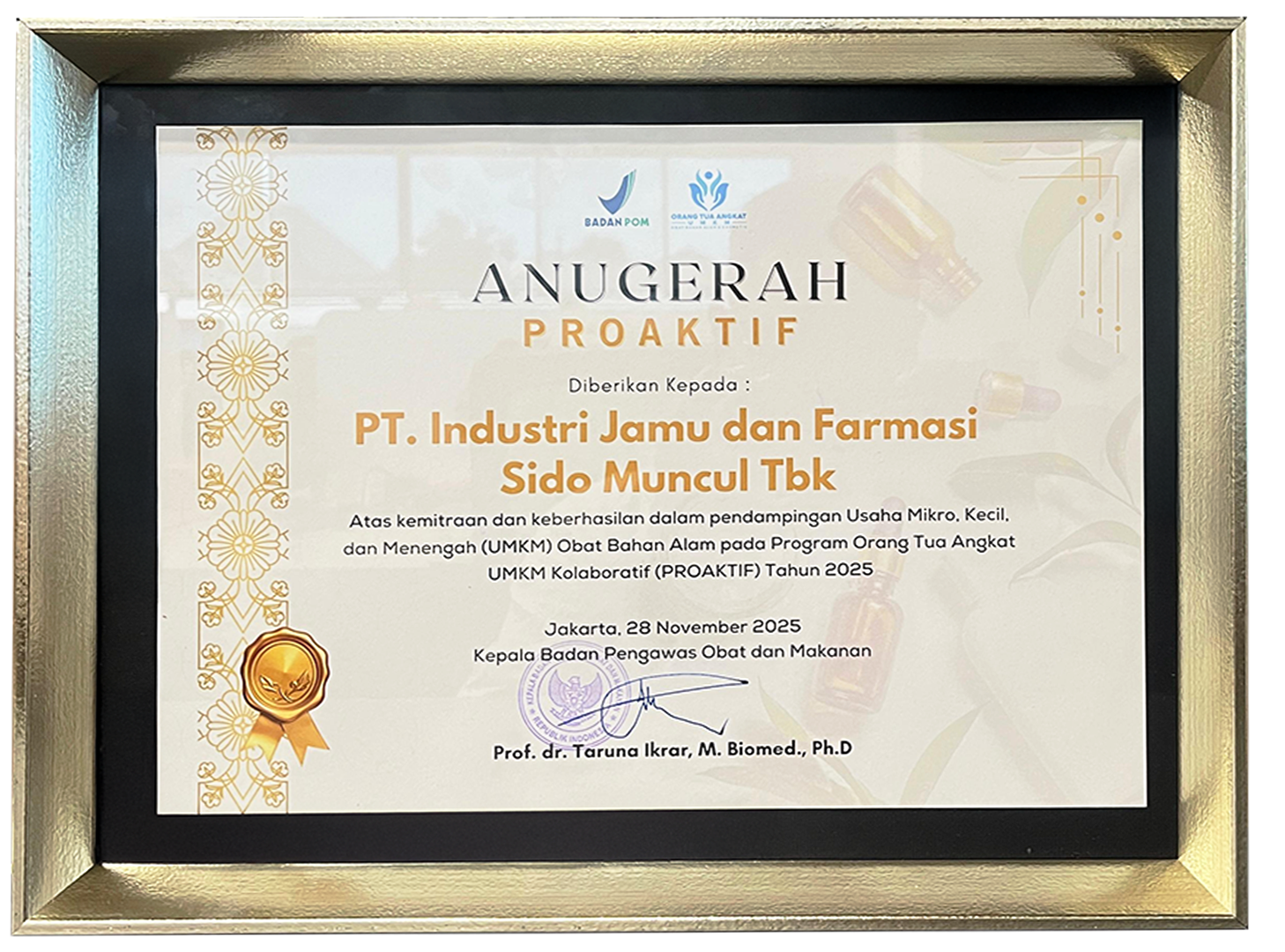 | Category | : | Atas Kemitraan dan Keberhasilan dalam pendampingan Usaha Mikro, Kecil, dan Menengah (UMKM) Obat Bahan Alam pada Program Orang Tua Angkat UMKM Kolaboratif (PROAKTIF) Tahun 2025. |
